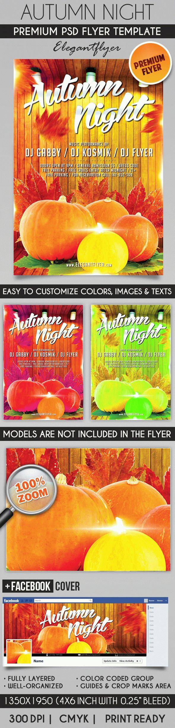 秋天的夜晚 - 传单PSD模板+ Facebook封面