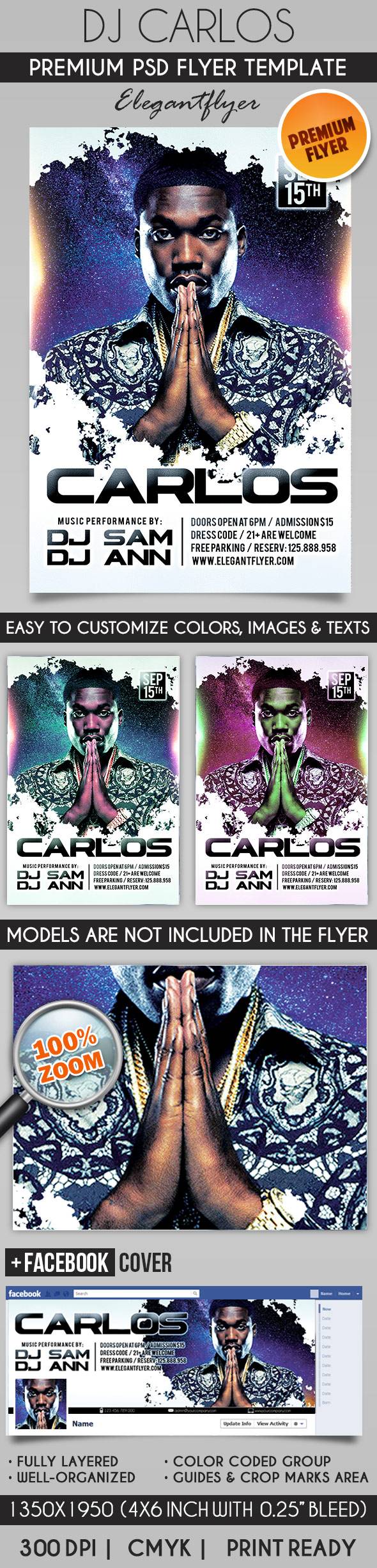 Dj卡洛斯 - 传单PSD模板+ Facebook封面