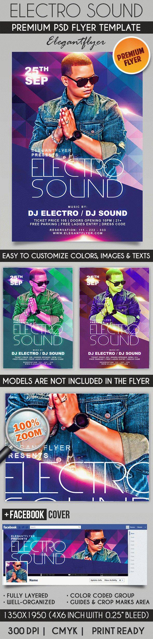 电声派对 - 传单PSD模板+ Facebook封面