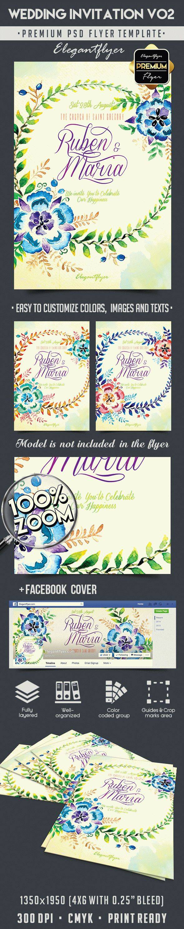 婚礼邀请V02 - 传单PSD模板+ Facebook封面