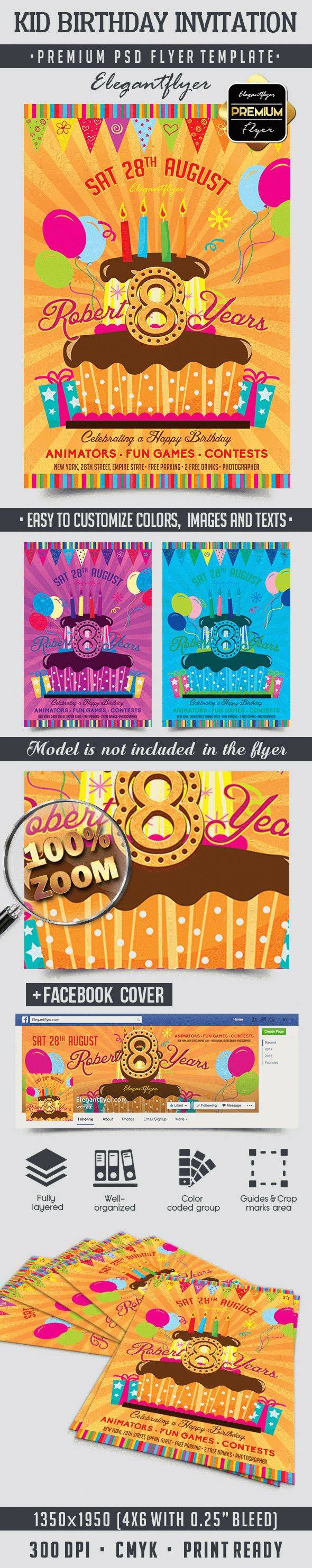 孩子生日邀请 - 传单PSD模板+ Facebook封面