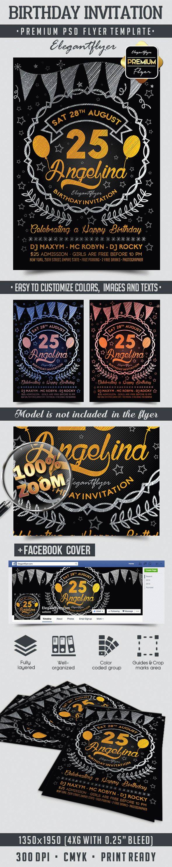 生日邀请 - 传单PSD模板+ Facebook封面