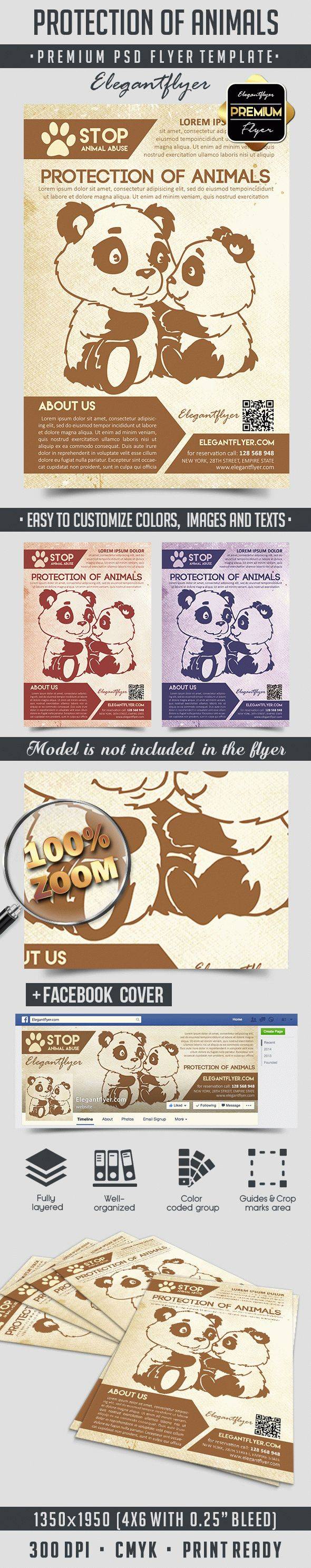 保护动物 - 传单PSD模板+ Facebook封面