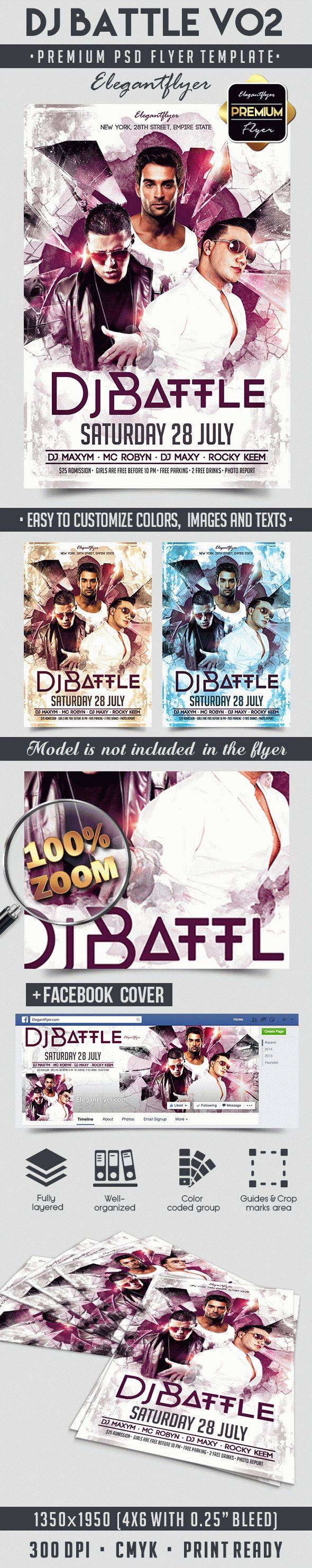 DJ战斗V02 - 传单PSD模板+ Facebook封面