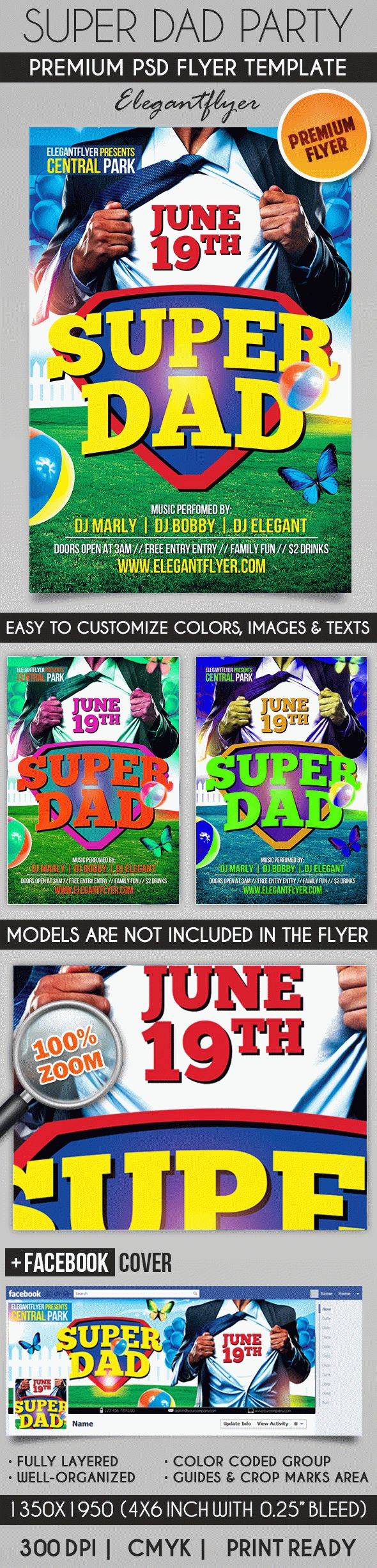 超级爸爸派对 - 传单PSD模板+ Facebook封面