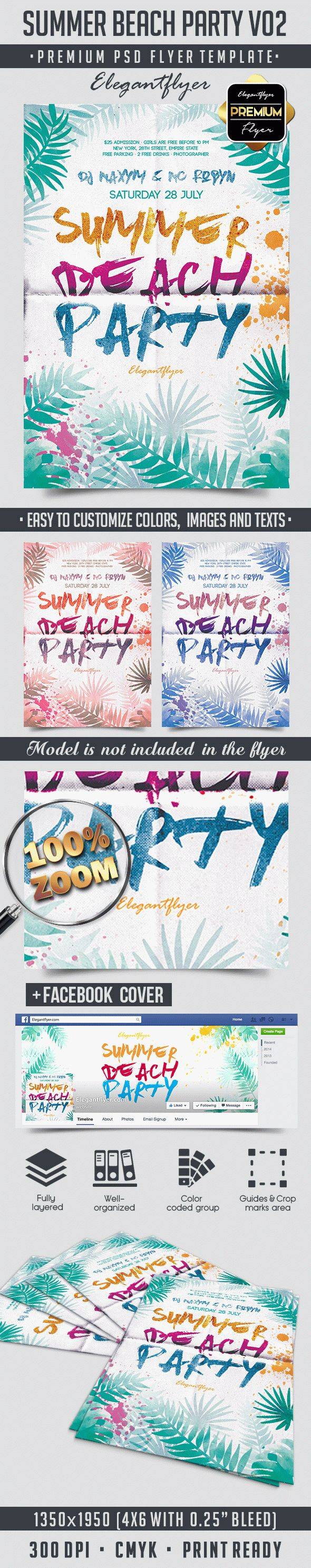 夏季海滩派对V02 - 传单PSD模板+ Facebook封面