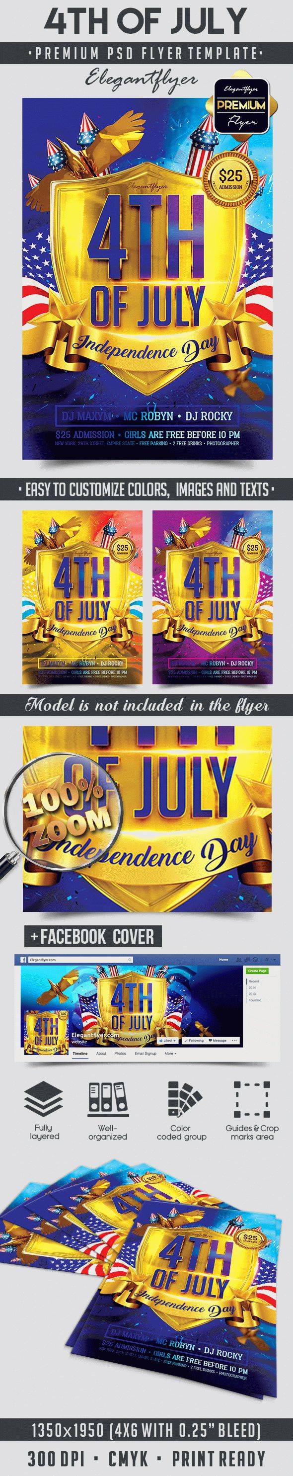 7月4日 - 传单PSD模板+ Facebook封面