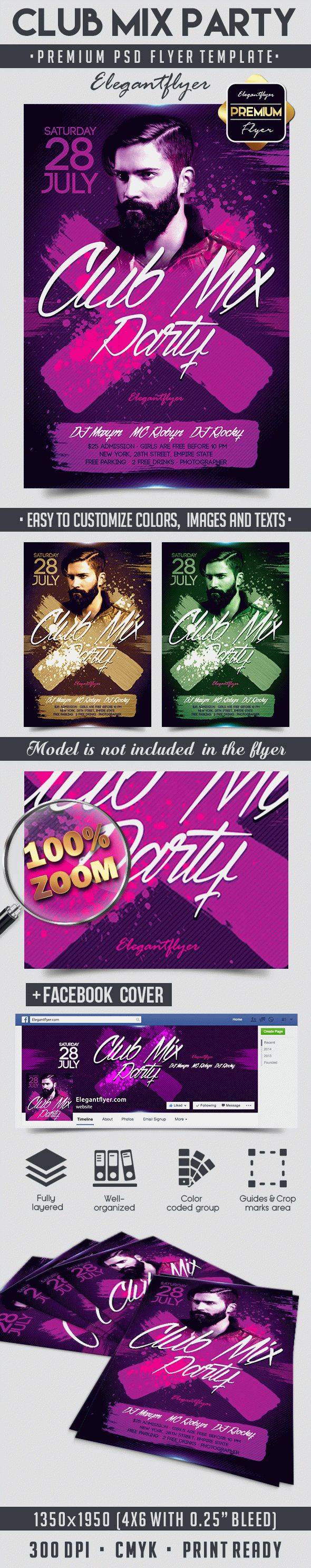 俱乐部混合派对 - 传单PSD模板+ Facebook封面