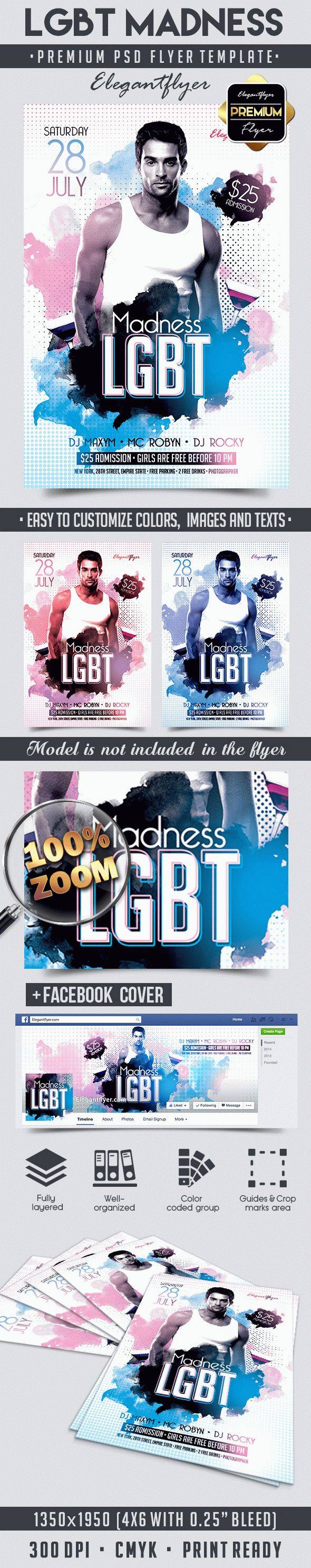 LGBT疯狂 - 传单PSD模板+ Facebook封面