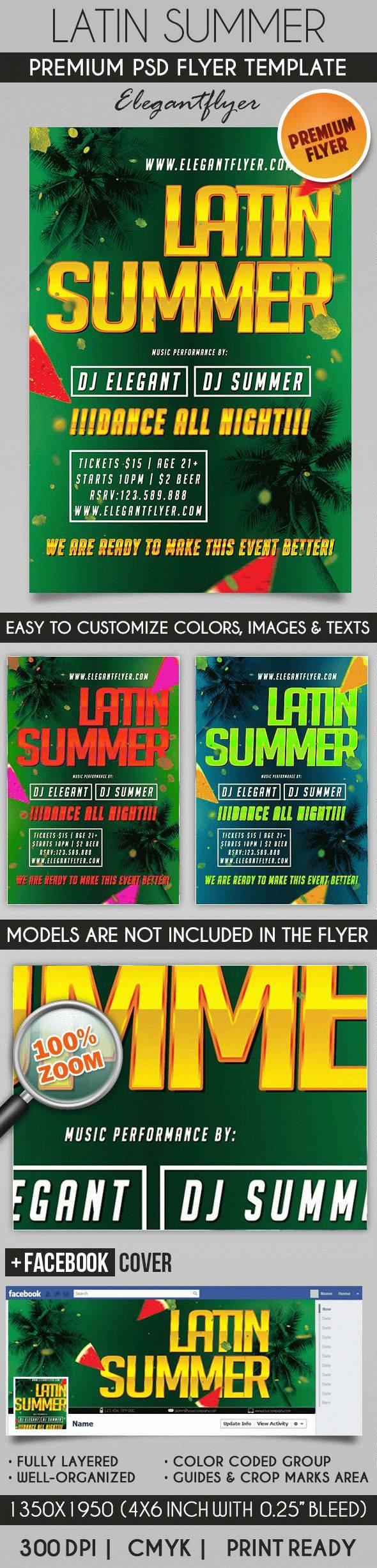 拉丁夏季 - 传单PSD模板+ Facebook封面