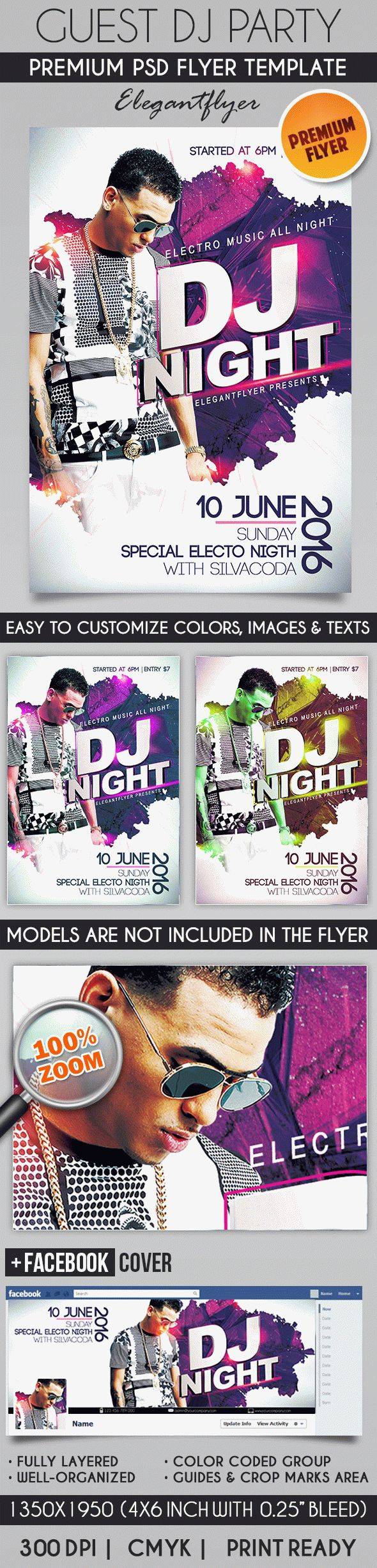 来宾Dj派对 - 传单PSD模板+ Facebook的封面