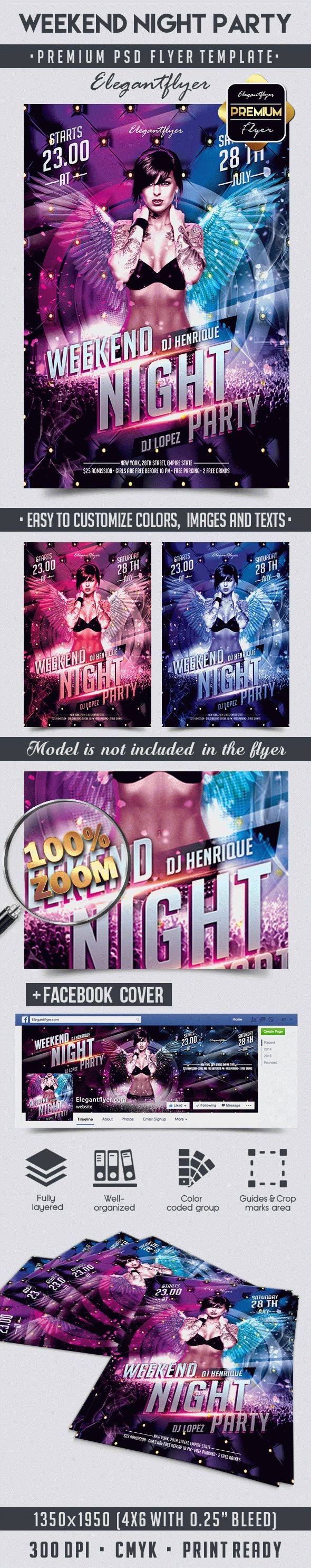 周末晚会派对 - 传单PSD模板+ Facebook封面