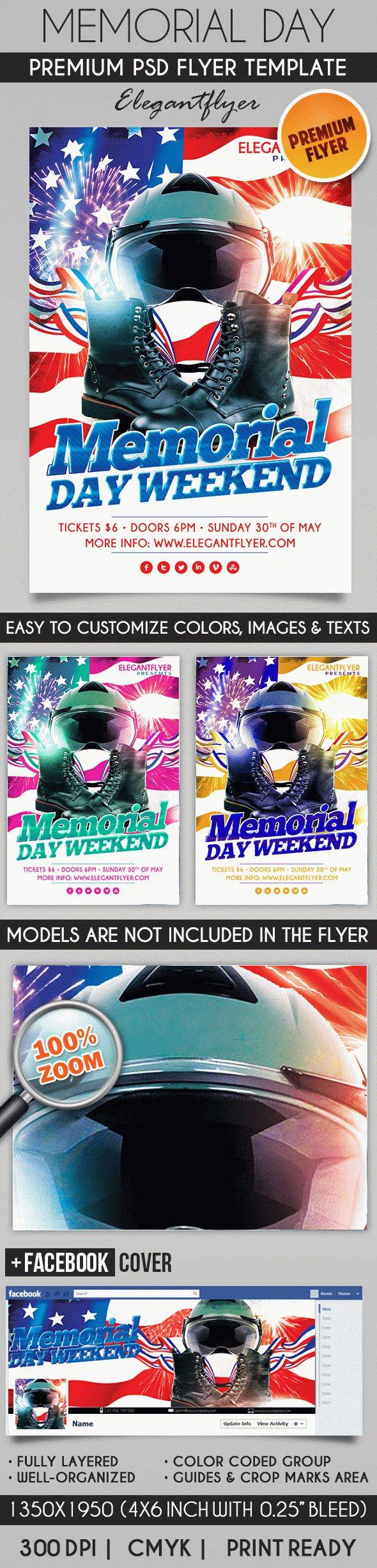 阵亡将士纪念日派对 - 传单PSD模板+ Facebook的封面
