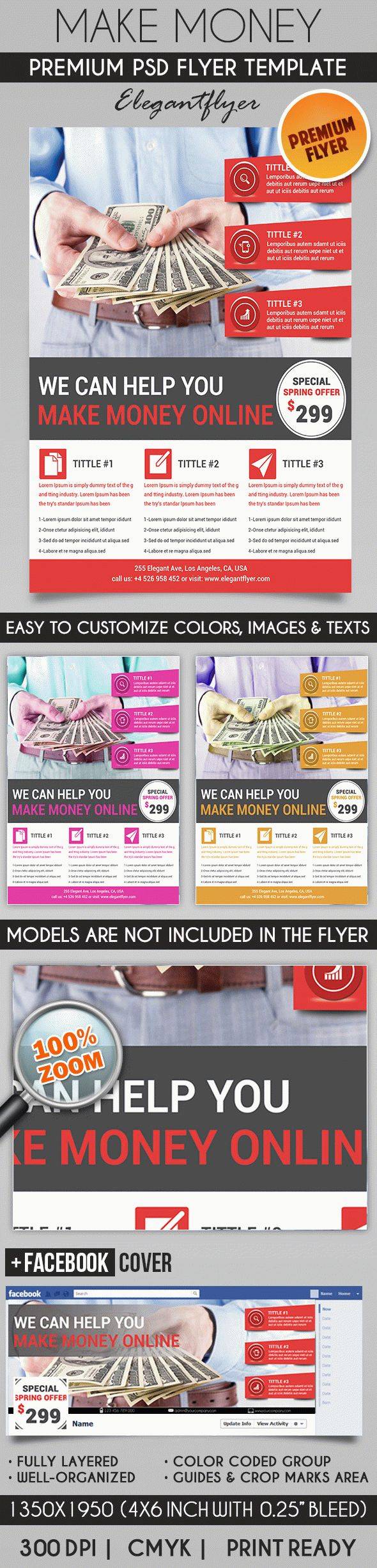 赚钱 - 传单PSD模板+ Facebook封面