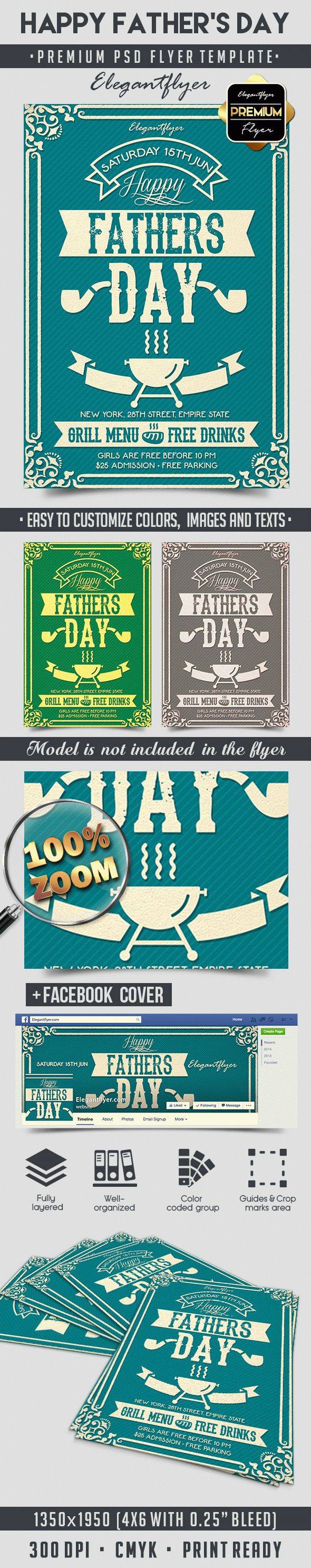父亲节快乐 - 传单PSD模板+ Facebook的封面