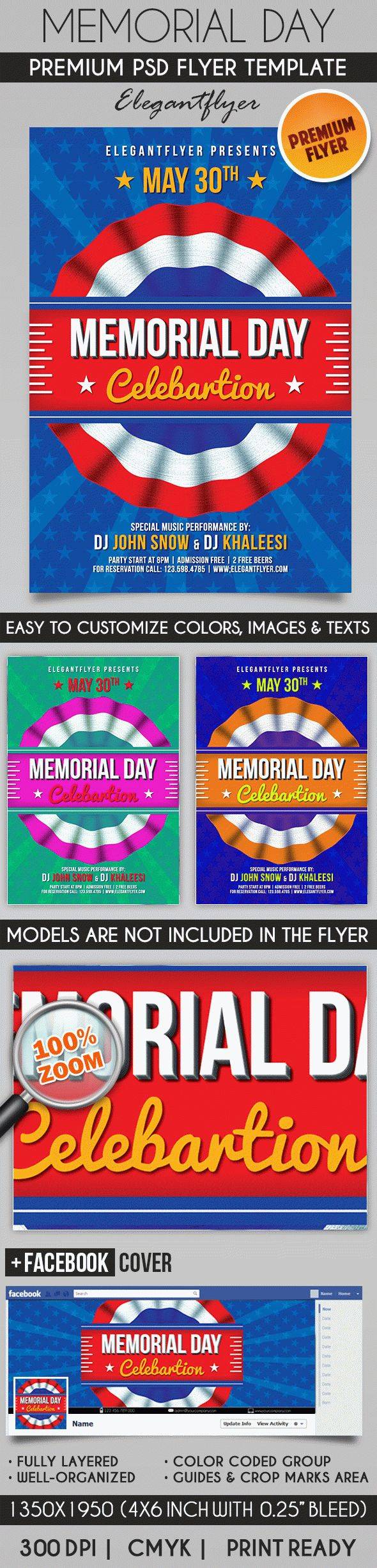阵亡将士纪念日庆祝活动 - 传单PSD模板+ Facebook封面
