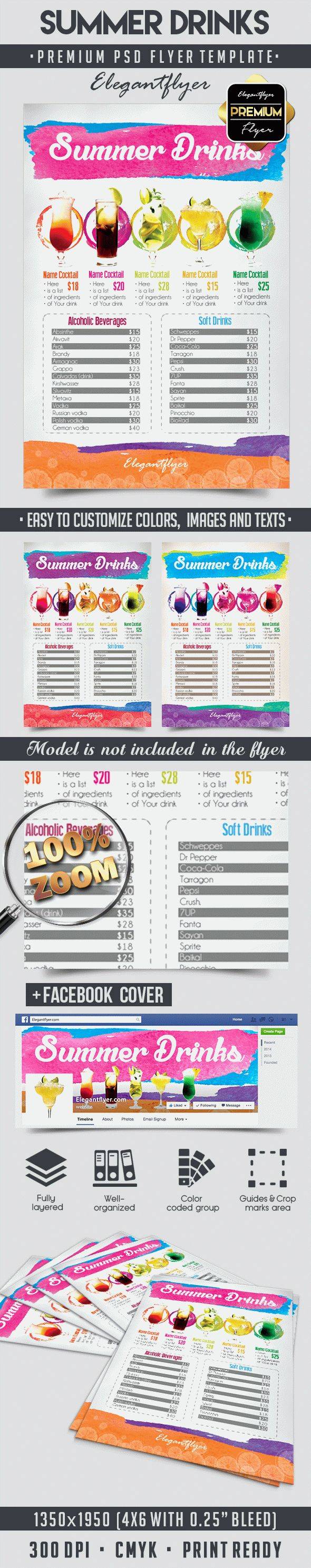 夏天饮料 - 传单PSD模板+ Facebook封面