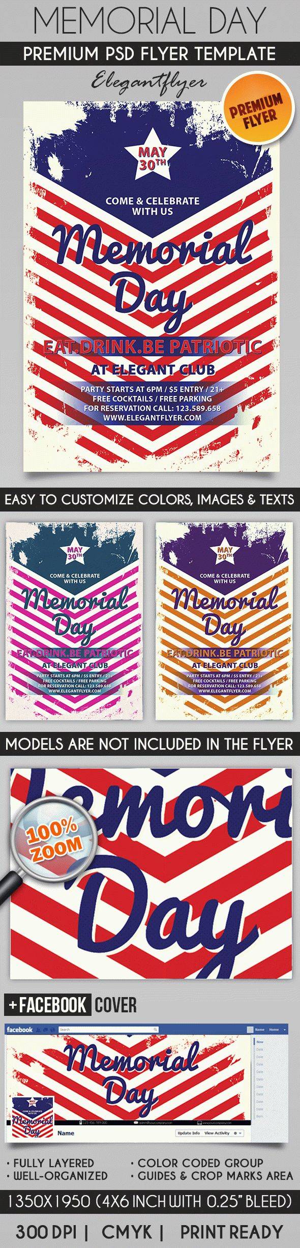 阵亡将士纪念日 - 传单PSD模板+ Facebook封面