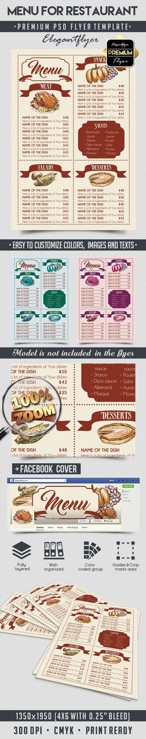 菜单餐厅 - 传单PSD模板+ Facebook封面