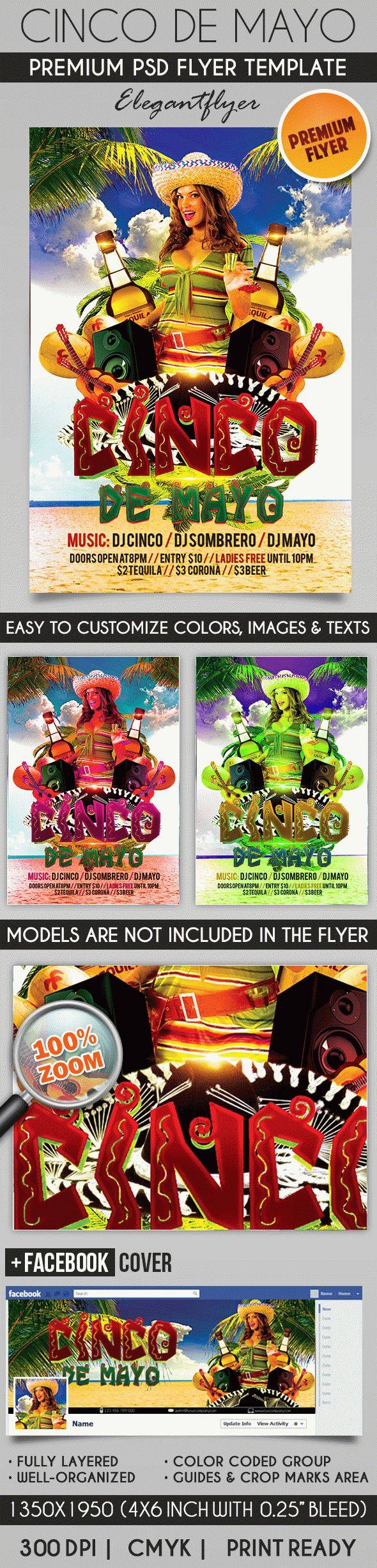 Cinco De Mayo庆祝活动 - 传单PSD模板+ Facebook封面