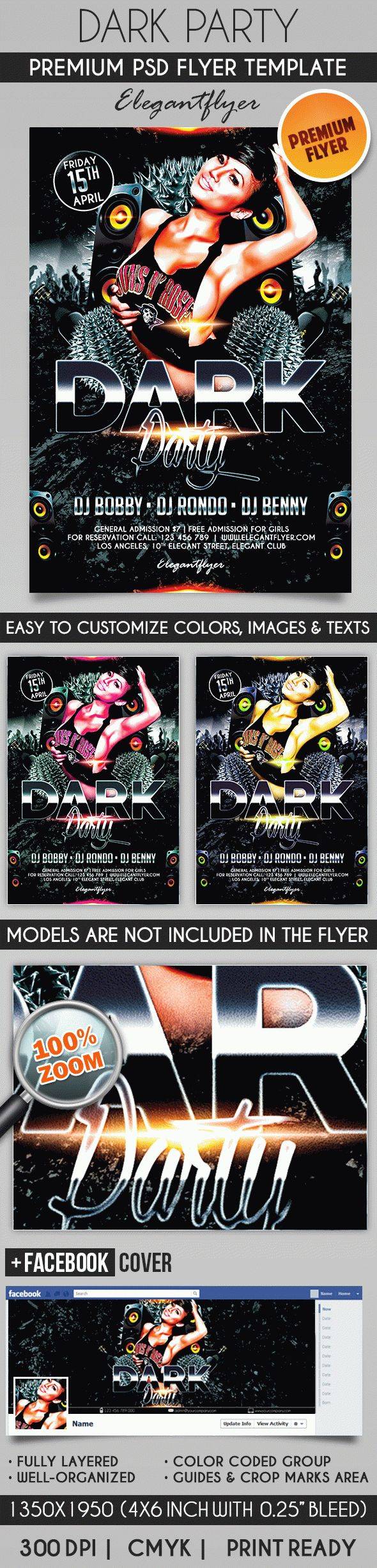 黑暗派对 - 传单PSD模板+ Facebook封面