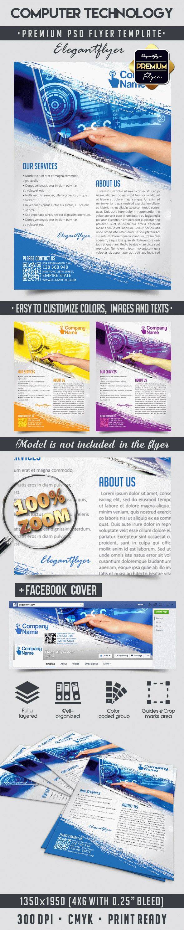 计算机技术 - 传单PSD模板+ Facebook封面