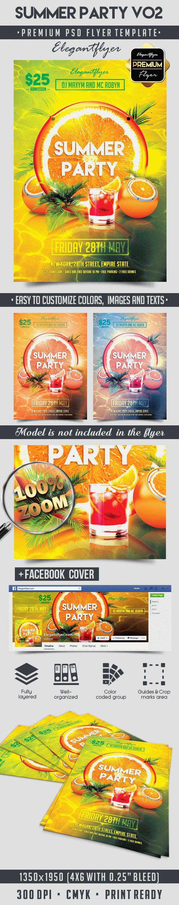 夏季派对V02 - 传单PSD模板+ Facebook的封面