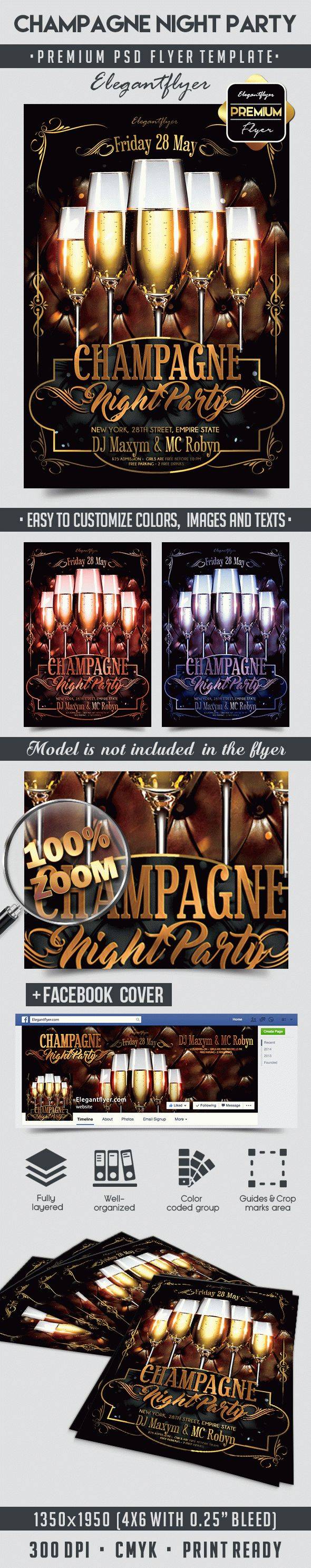 香槟晚会 - 传单PSD模板+ Facebook封面