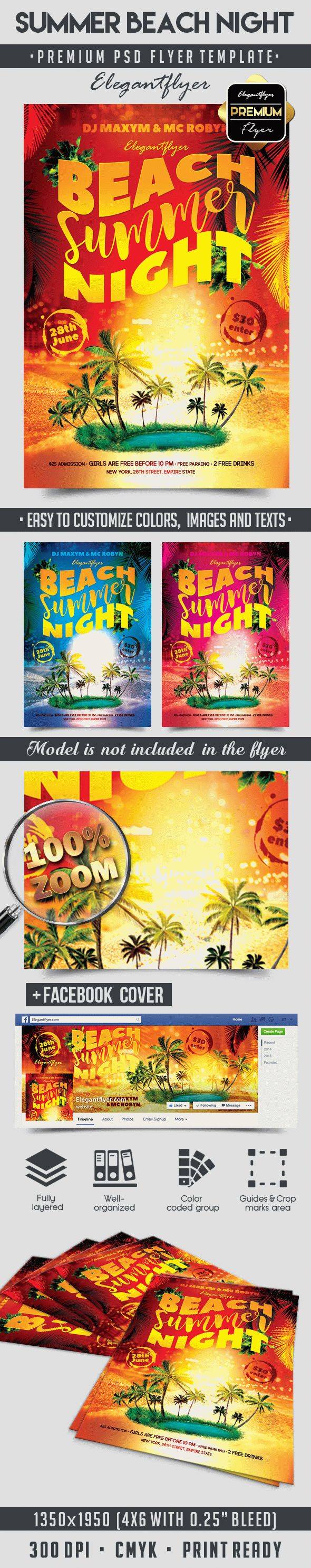 夏季海滩之夜 - 传单PSD模板+ Facebook封面