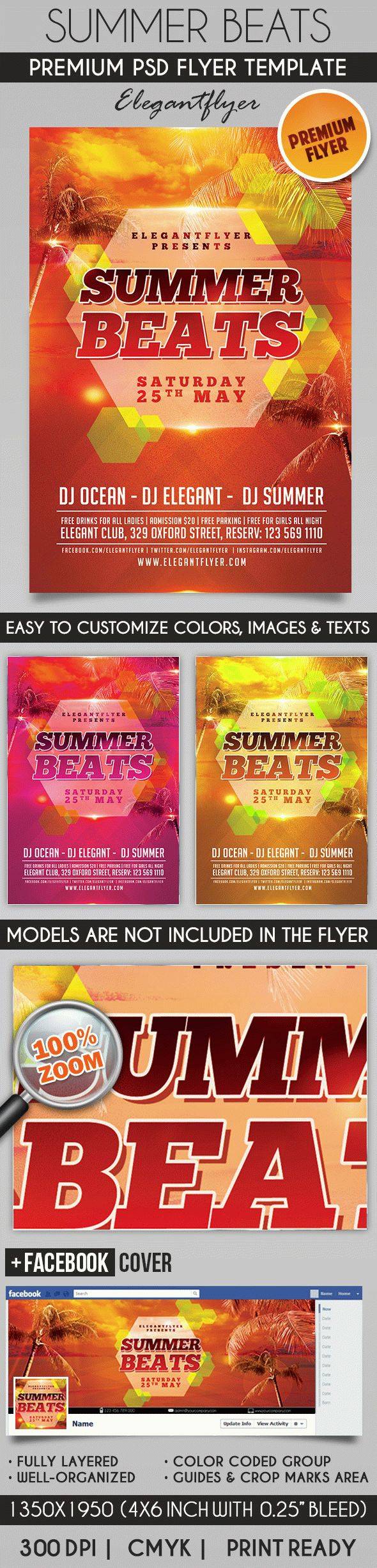 夏天节拍 - 传单PSD模板+ Facebook封面