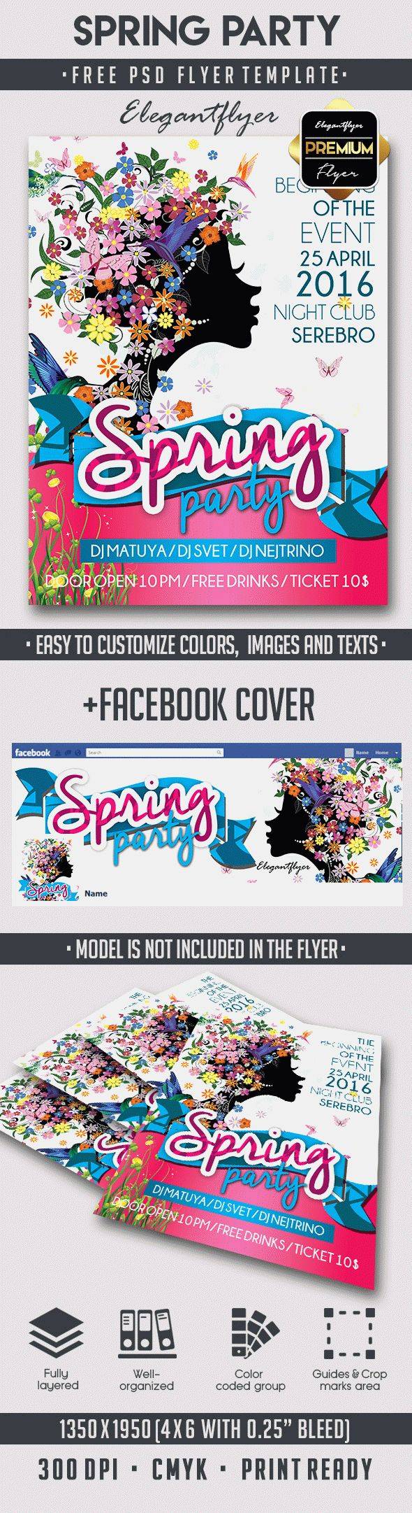 春季派对 - 传单PSD模板+ Facebook的封面