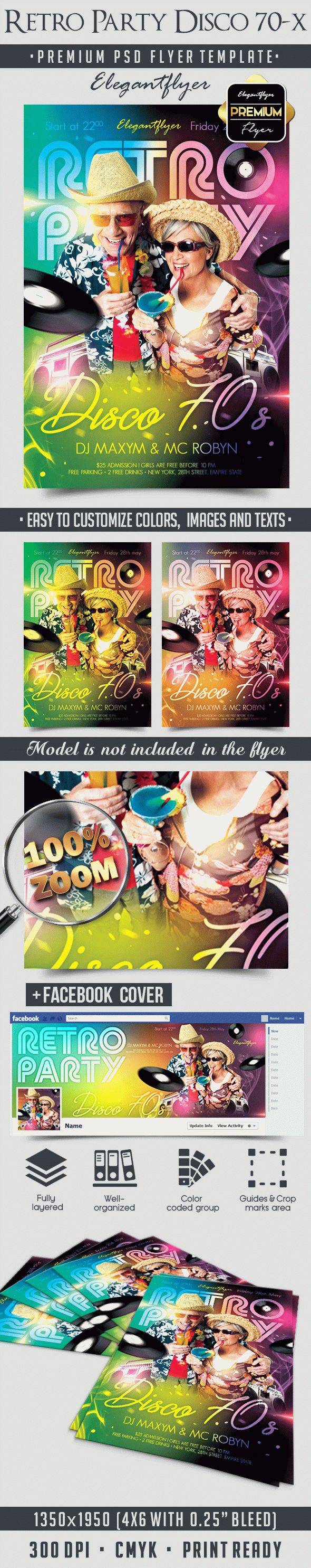 复古派对迪斯科70-S - 传单PSD模板+ Facebook封面