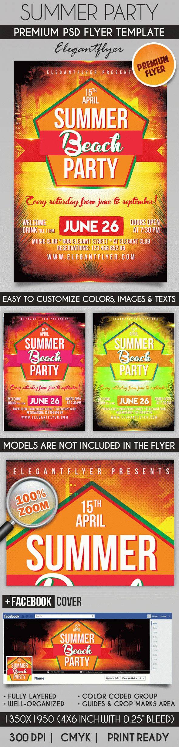 夏季派对 - 传单PSD模板+ Facebook封面