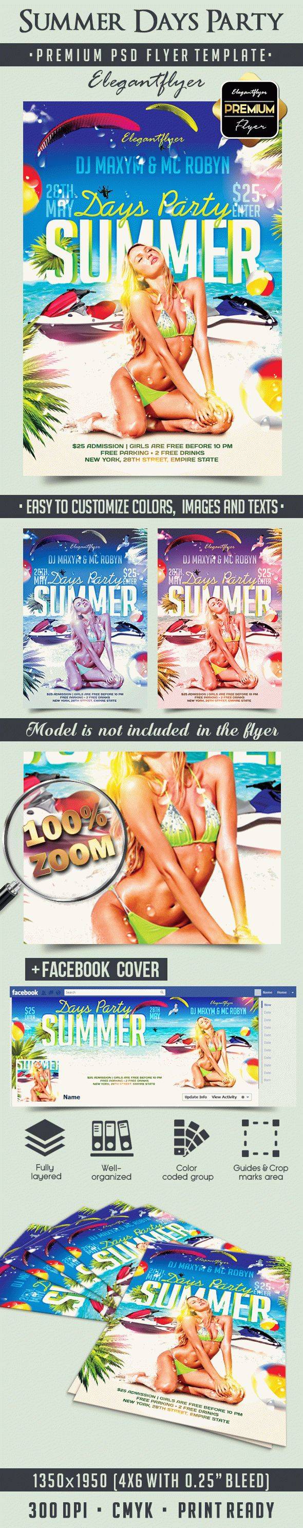 夏日派对 - 传单PSD模板+ Facebook的封面