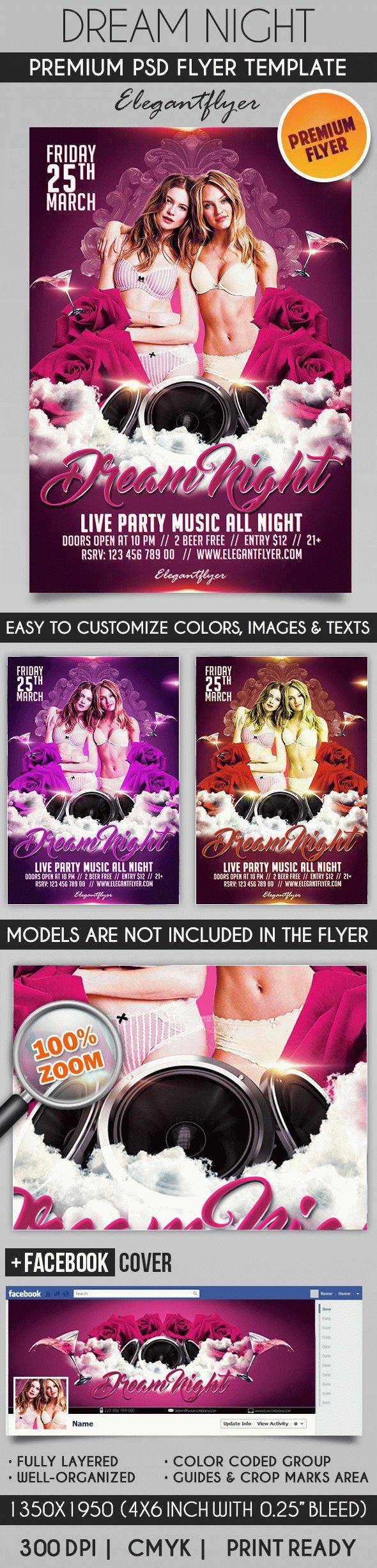 梦想之夜 - 传单PSD模板+ Facebook封面