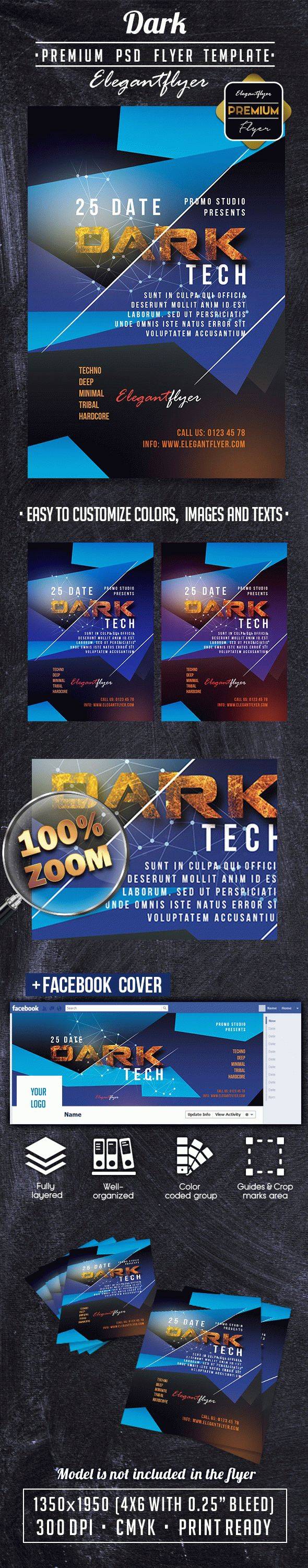 黑暗溢价传单PSD模板+ Facebook封面