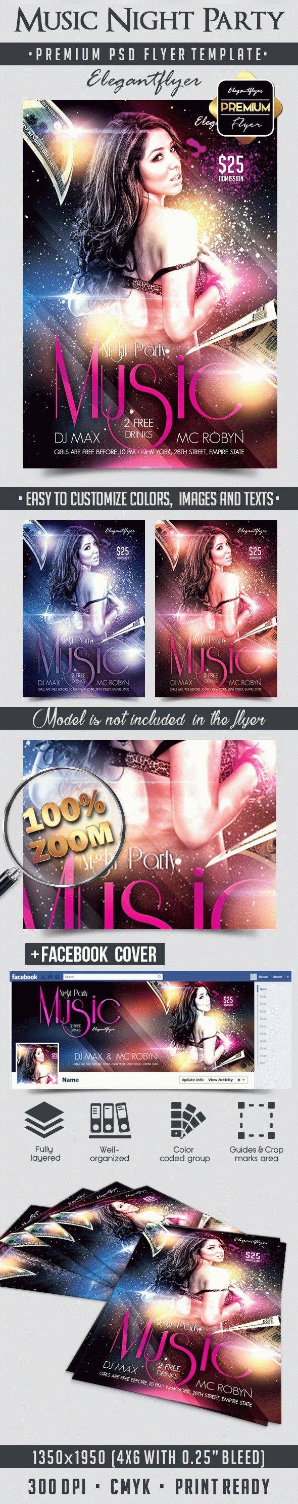 音乐晚会 - 传单PSD模板+ Facebook封面