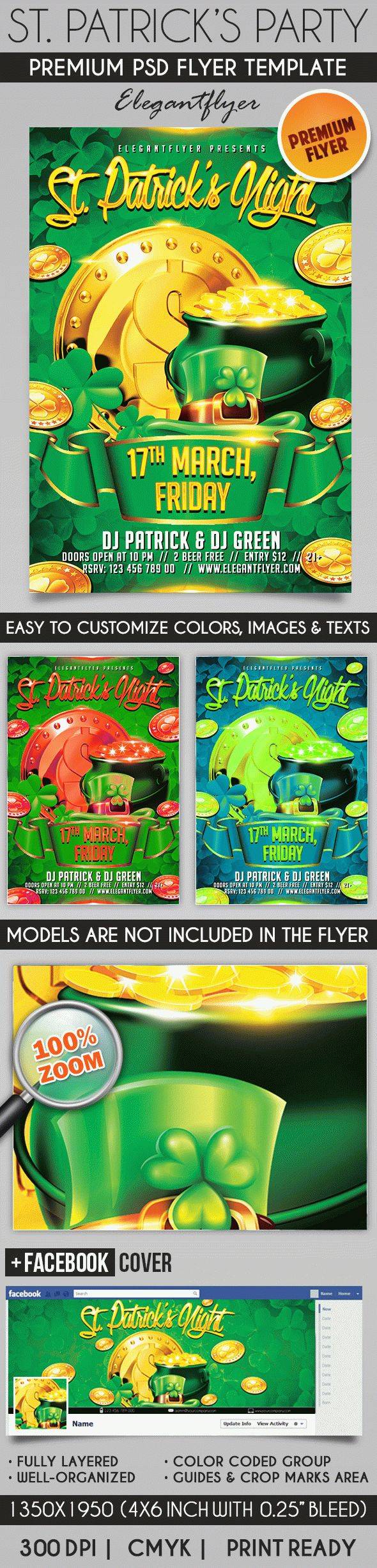 圣帕特里克聚会 - 传单PSD模板+ Facebook封面
