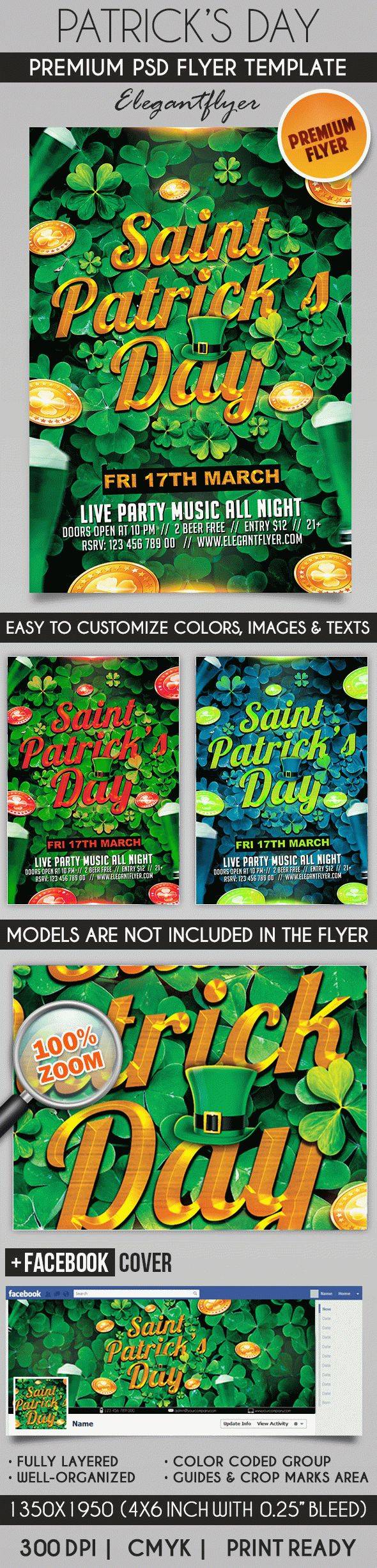 帕特里克节 - 传单PSD模板+ Facebook封面
