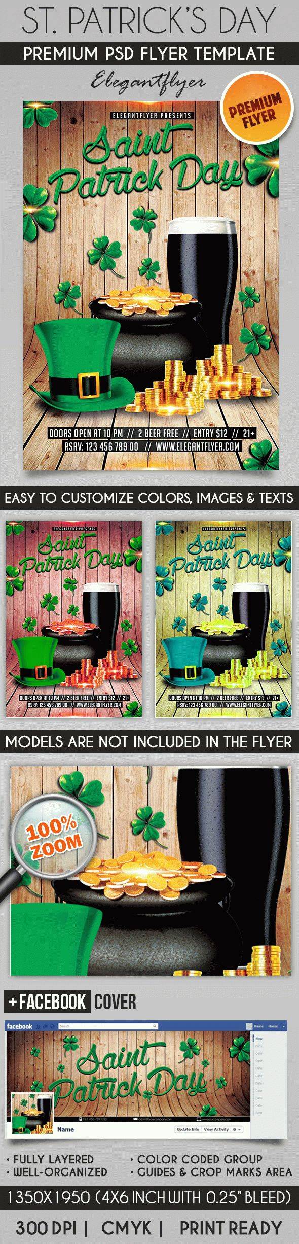 圣帕特里克日 - 传单PSD模板+ Facebook封面