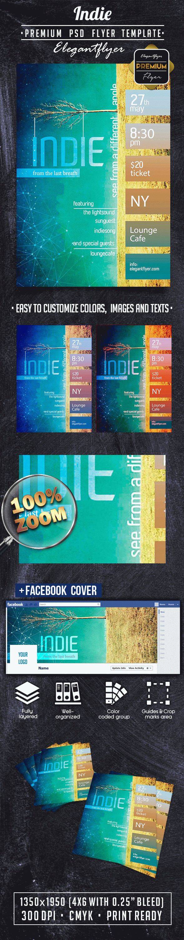 独立溢价传单PSD模板+ Facebook封面