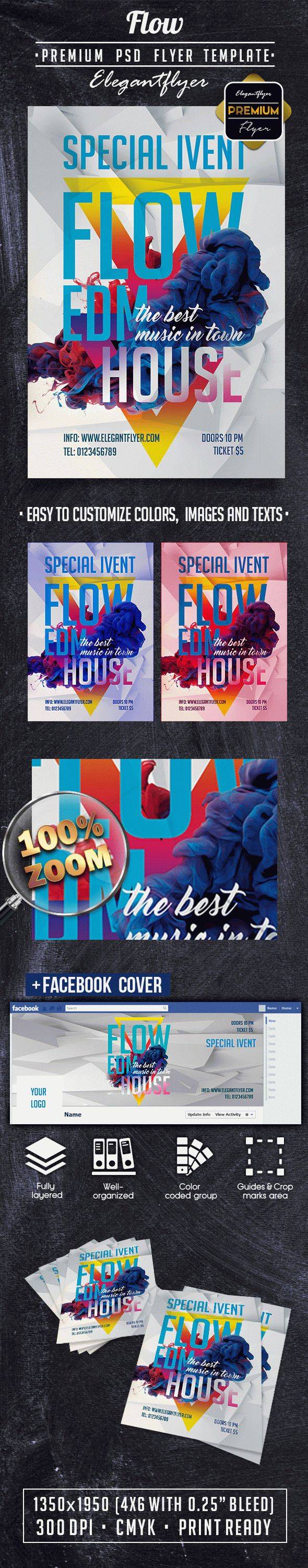 流溢价传单PSD模板+ Facebook封面