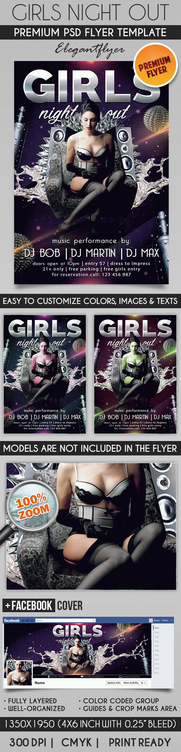 女孩晚上出 - 传单PSD模板+ Facebook封面