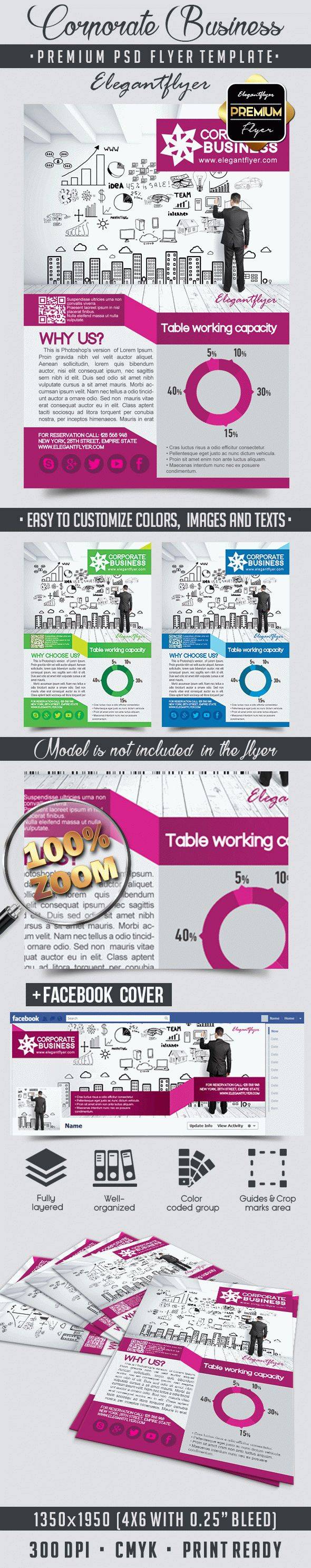 公司业务 - 传单PSD模板+ Facebook封面