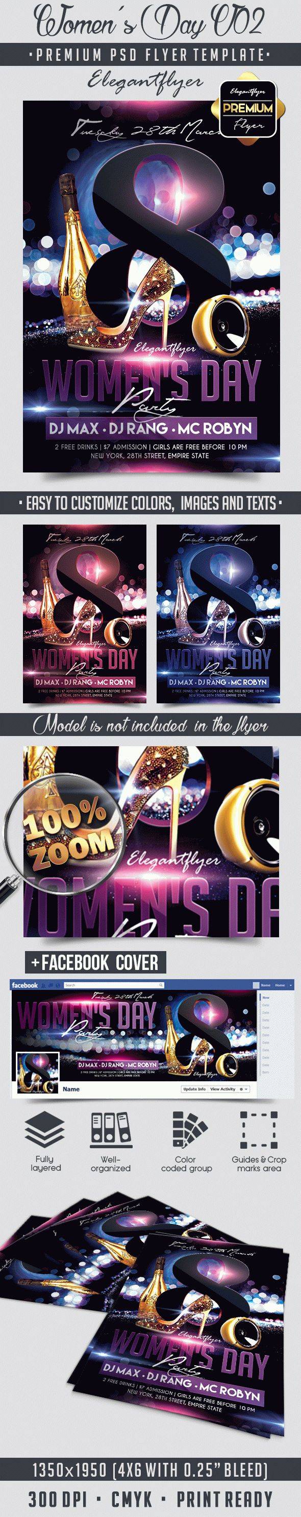 妇女节派对 - 传单PSD模板+ Facebook封面