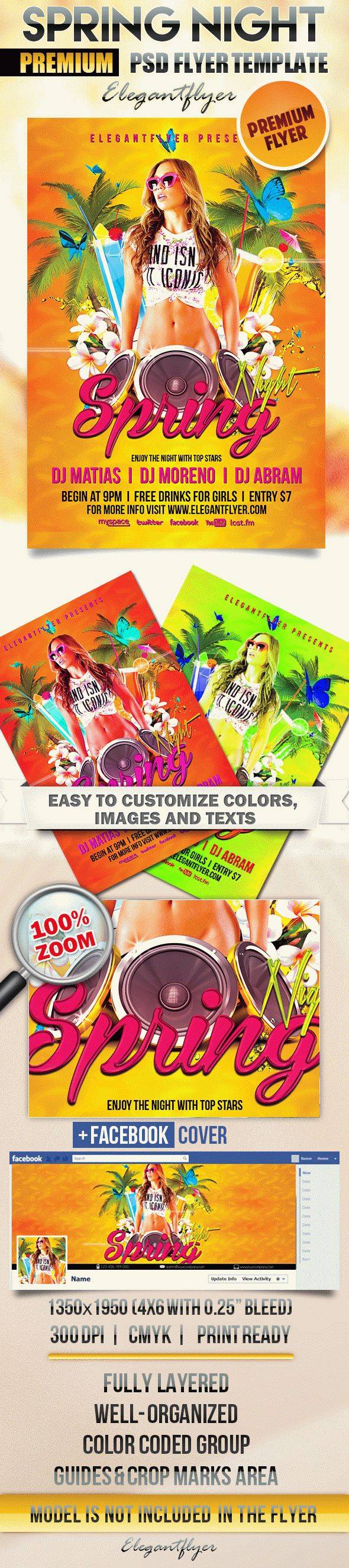 春天的夜晚 - 传单PSD模板+ Facebook封面