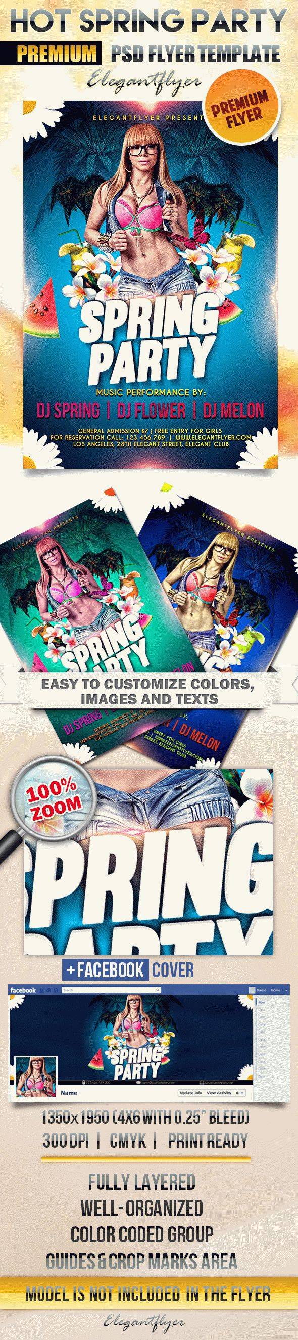 温泉派对 - 传单PSD模板+ Facebook的封面