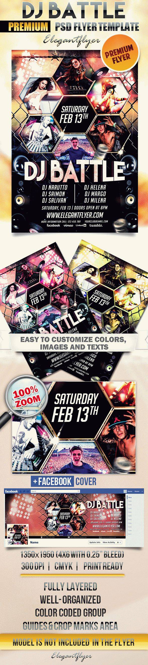 Dj战斗 - 传单PSD模板+ Facebook封面