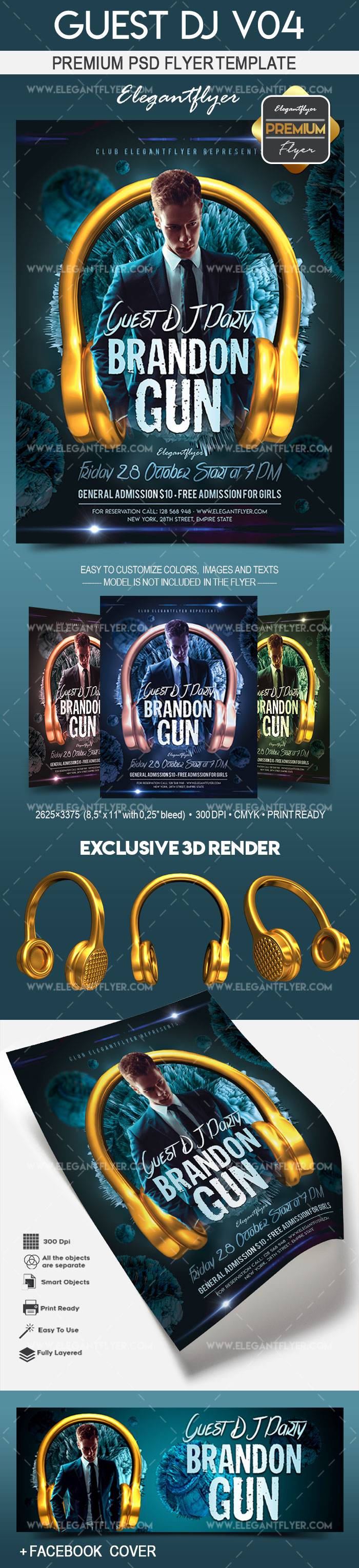 客人DJ V04 - 传单PSD模板+ Facebook封面