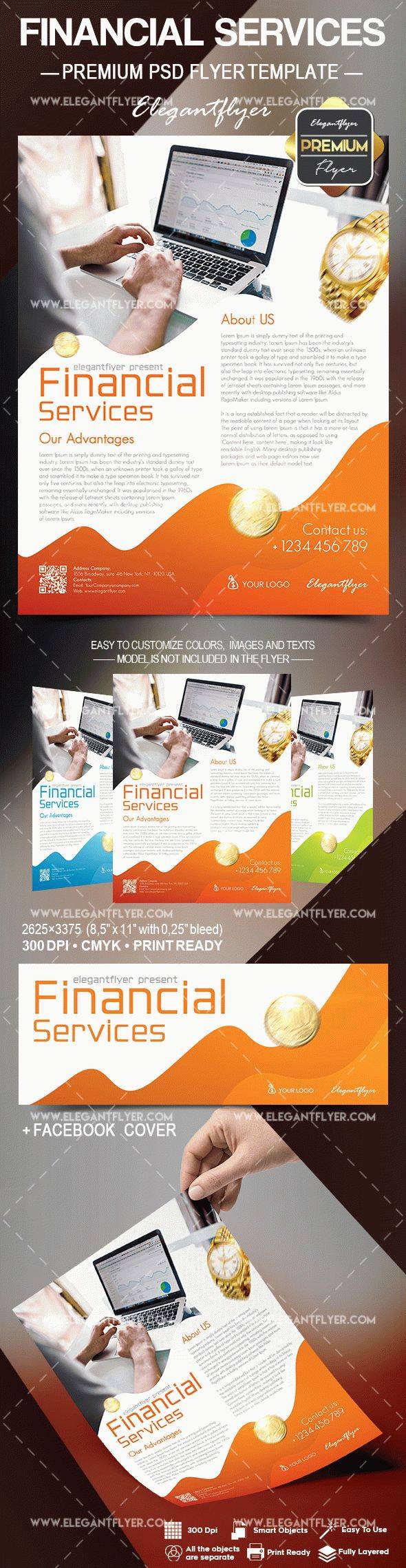 金融服务 - 传单PSD模板+ Facebook封面